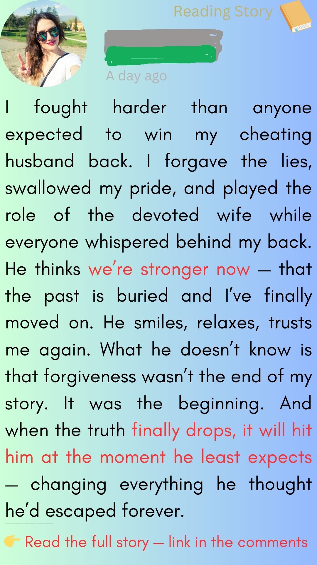 When I confronted him, he cried. Actually cried. He said it was a mistake. That it meant nothing. That he’d been lonely, stressed, stupid. He begged me not to leave, promised therapy, transparency, a fresh start. Everyone told me I was weak for staying. Maybe I was. Or maybe I was patient.