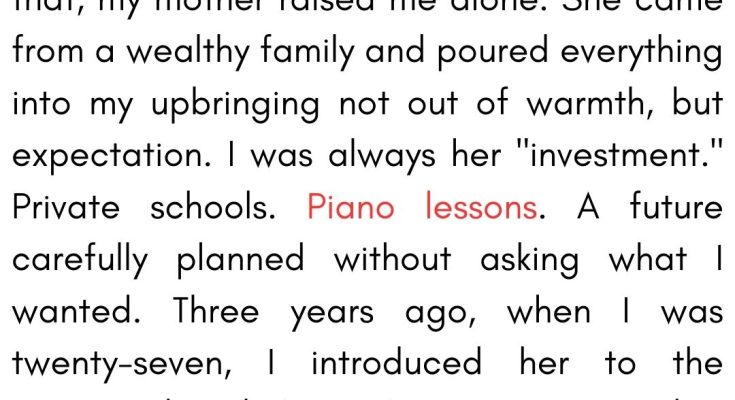 My father left when I was five. After that, it was just my mother and me. She raised me alone, but not with warmth. With expectations. She came from a …