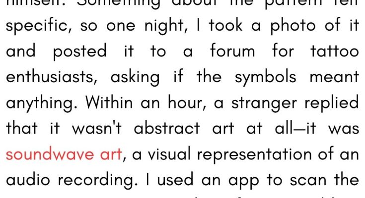 My Husband’s New Tattoo Looked Like Art. I Scanned It With an App and Heard His Secret Family. Read More